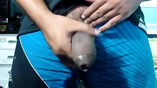 cockam68 gros plan caressant son énorme serpent à pantalon poilu non circoncis avec une fine éjaculation gratuite à la fin