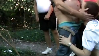 felix harris, glenn hut, bautista nores &leonel russell genießen einen spontanen vierer im wald
