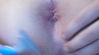 A young athletic and sweet guy plumbs himself hard with his hand and flashes a big anal blossom